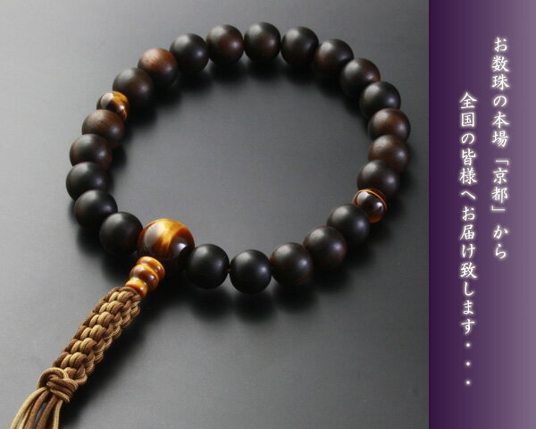 ◆数珠・念珠◆浄土真宗の方におすすめ!数珠袋プレゼント中!(レビュー記入特典)数珠・念珠 『編み紐房 黒檀(素挽き) 虎目石仕立て (男性用)』 略式 片手 一輪 浄土真宗 本願寺 【あす楽対応】